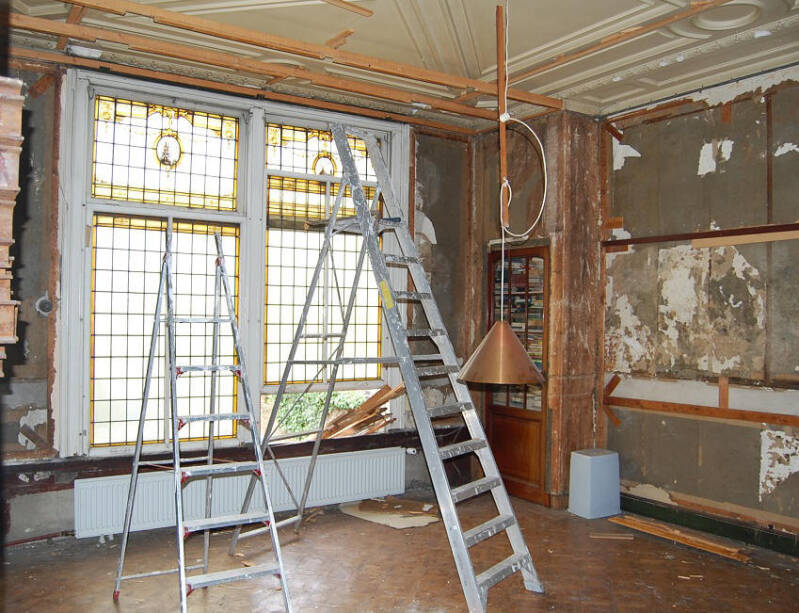 In 2015 zijn we begonnen met de restauratie van de studeerkamer. Alle materialen die niet horen bij de oorspronkelijke inrichting hebben we verwijderd.